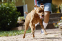 2. At that point, kneel and say “Come” and give the line a small, sharp tug. The tug will turn the puppy toward you. He may then: